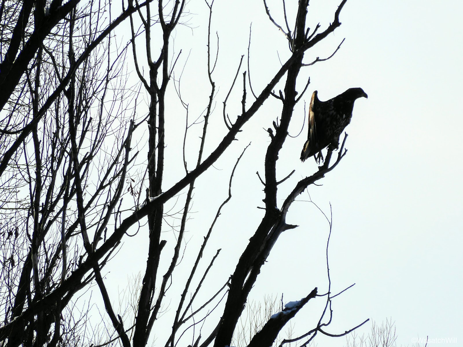 This time, more eagles were sighted. At first, there was a juvenile out perched on some ice buildup.
