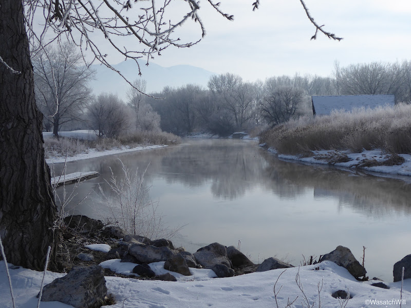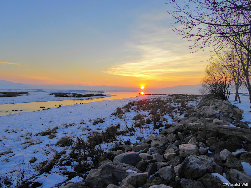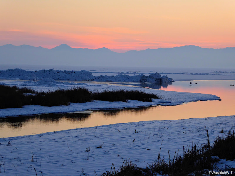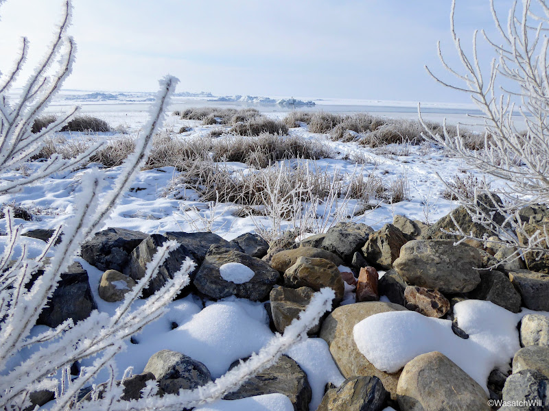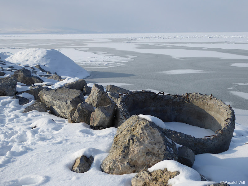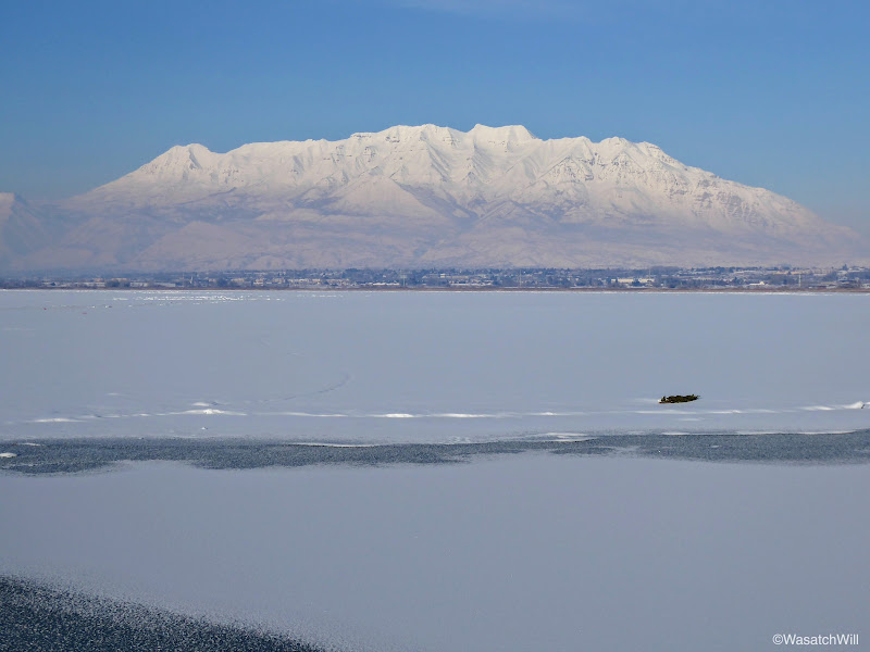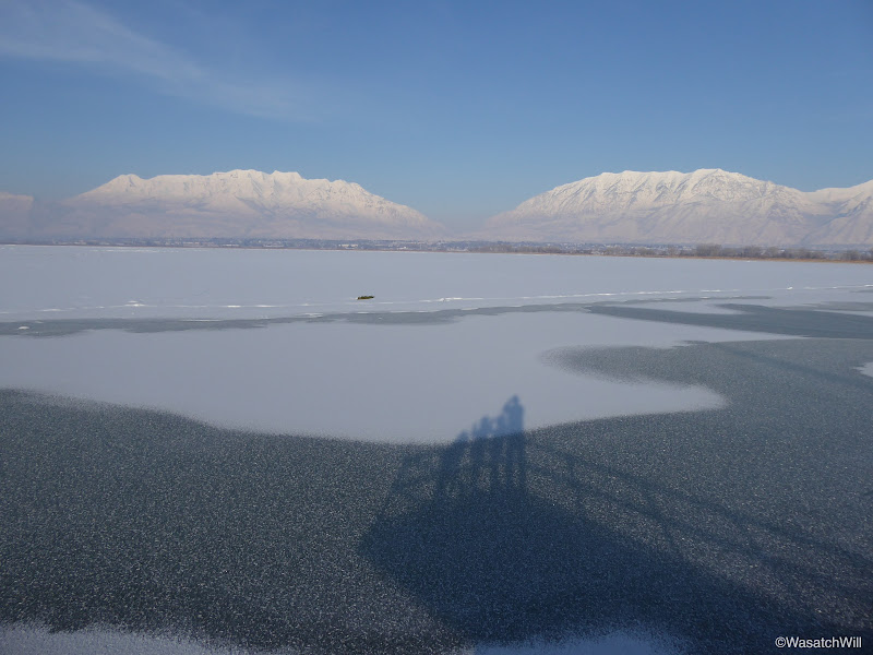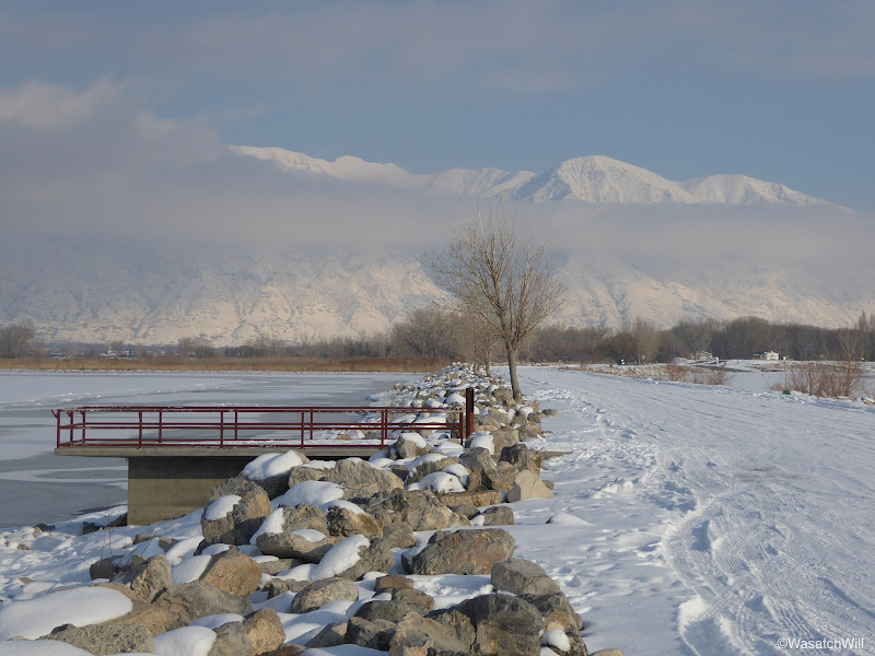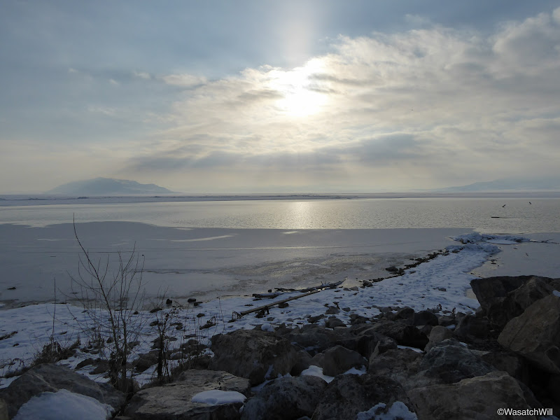 I made the decision to drive down to Utah Lake State Park on the other side of town after work on a Friday afternoon. My son was the only one who wanted to join me for this little trip. We pulled into the park and began to drive around occasionally glancing up into the high trees throughout the park hoping to find an eagle. There was nothing to be seen right away so we continued to drive around looking at what all the park had to offer. I'd never been closer than the gate to the park, so it was my first time being within the park. We found our way out to the end of both of the dikes that reached out into the mostly frozen Utah Lake.