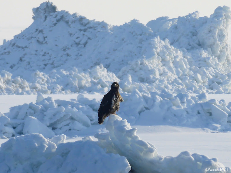 This time, more eagles were sighted. At first, there was a juvenile out perched on some ice buildup.