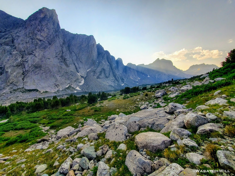With the sun now shining from the east, the smoky filter that had been so visible the previous evening was no longer so prominent. The high granite towers that stood at the head of this basin were every bit as majestic and wondrous as they had appeared in pictures and videos all over the Internet. No doubt at least a few dozen folks were gearing up to climb some of the granite walls we were staring out at, if they were not already on belay. After all, the Cirque of the Towers is a world famous destination for alpine rock climbing, a factor that contributes to a chunk of its ever-growing popularity.