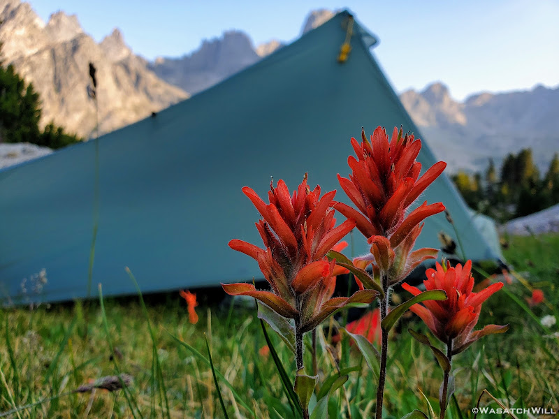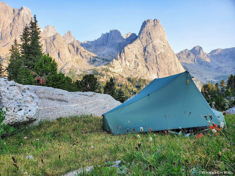 Tarptent Notch nestled high up in the Cirque of the Towers, Pingora Peak above it