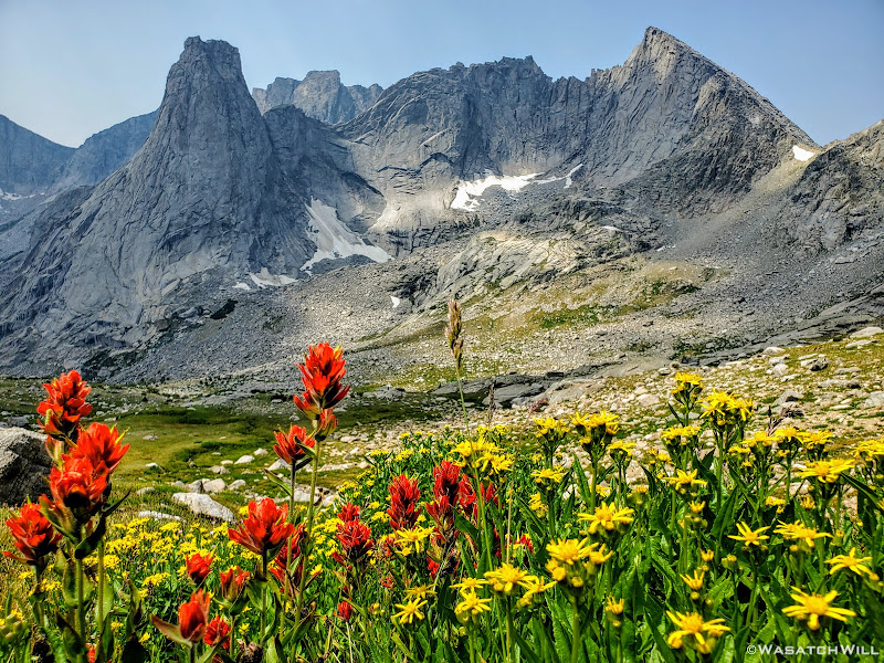 Closer up on the flowers with Pingora Peak and Wolfs Head above