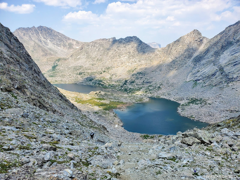 Once well rested from the long haul up Texas Pass, we then descended down the steeper, rockier, and somewhat less stable north side to Texas Lake down below.