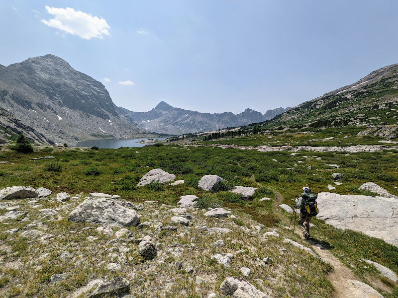 At the top of the pass we met an amazing family from Ohio, the father being an orthopedist at Ohio State University. What made this family stand out from the many other groups we'd encounter, this day or throughout the trip, is that not only was there a father and mother duo here with children in stow, it was four children ranging from mid or younger aged teens at the oldest down to around 6 or 7 years old. If I remember right, they were doing the more popular loop out of Big Sandy that circles over and around Shadow Lake, Texas Lake, and then up and over into the Cirque of the Towers. Tasty snacks and treats every so often were the consistent motivating factor that kept the younger of these amazing kids rolling along. Of course they were pacing themselves out with a lower amount of miles each day, spending something like five days doing a route that most people tend to spend three days doing.
