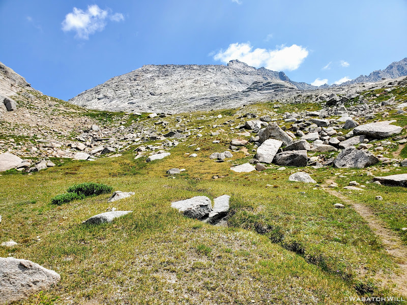 Rounding around the other side, we lost much of the crowds we had just come through. But that would only be temporary. A parade of other backpackers would soon descend Texas Pass into the Cirque and a few more would likely follow behind us going the opposite way.