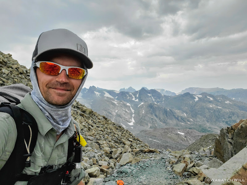 While having lunch we noticed some clouds starting to build up in the sky, particularly out to the southwest, the direction from which summer storms often flow from out here in the mountain west. Just as we felt like we were making good progress on the day, I started to grow a little more nervous again and again I asked, (whether to myself or aloud, I do not remember) Were we now going to get hit with our first storm after being lit up by the sun all day for our first four days out? This would not be an ideal place for that to happen for there wasn't much to retreat to in order to reduce the risk of any lightning strikes. I attempted to pull down a weather forecast on my InReach, but for whatever reason it would not pull anything in for the weather. Odd, I thought. There was still enough blue sky around and my device confirmed it had a good satellite signal connection. So to further test that signal connection, I sent a message out to my wife back at home and asked her to get on mountain-forecast.com and look up the current forecast for Fremont Peak, a peak I knew was listed on that website and wasn't very far away as the crow flies. The outbound message was sent followed by a unique beep that confirmed it was successfully carried up to the satellite. Then...we waited.