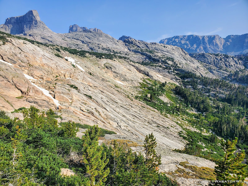 The blissful experience we had enjoyed hiking down through the upper half of the basin started to turn into some moments of frustration when all of the few spots I had marked out on my map ahead of time for potential camp spots all turned out to be occupied. That meant we had to keep heading downward, even reaching the junction with Titcomb Basin before the landscape began to open up again and spread out.