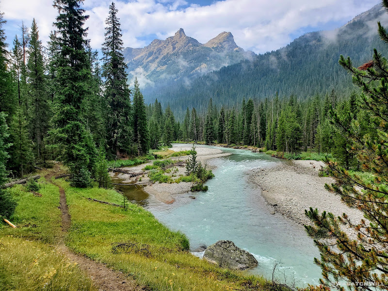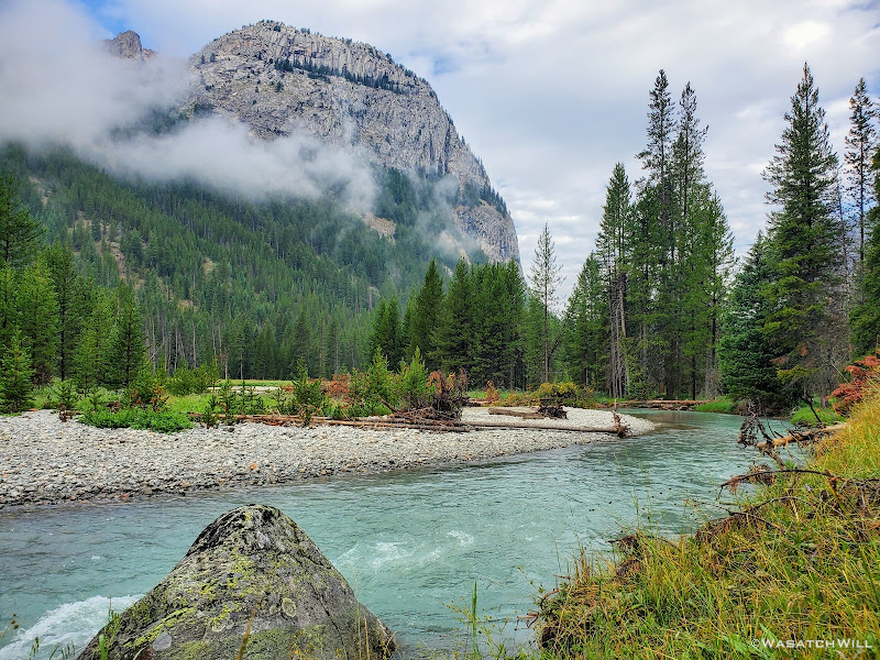 Shortly after leaving our last camp behind us, we were treated to a dazzling view of Granite Peak with clouds drifting across its face and the bright turquoise waters of the Green River flowing beneath. It was both a misty and mystical view.