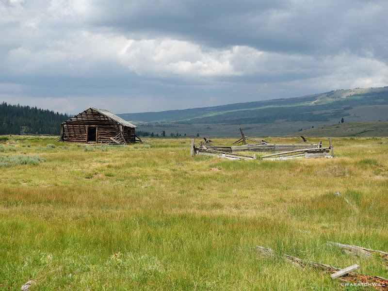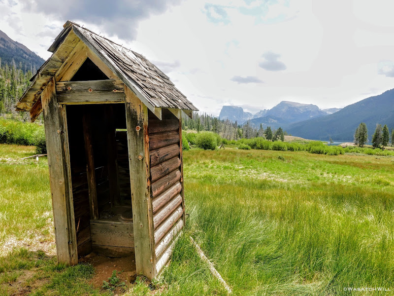 However, when it came to the outhouse for this old settlement, I think an opportunity was missed here. Turn this outhouse around to face ol' Square Top Mountain and you'd have a classic 'loo with a view while you poo'. Not only that, but it'd also have exposure to the southern sun to warm that seat up a bit in the winter. Why it was built to face the north, I'll never know. Had this been my land, I would have been certain to turn it around to behold the view of Squaretop out in the distance.