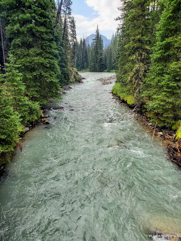 We continued on between patches of forest, meadows, open views of the river and occasional glances back to Squaretop.