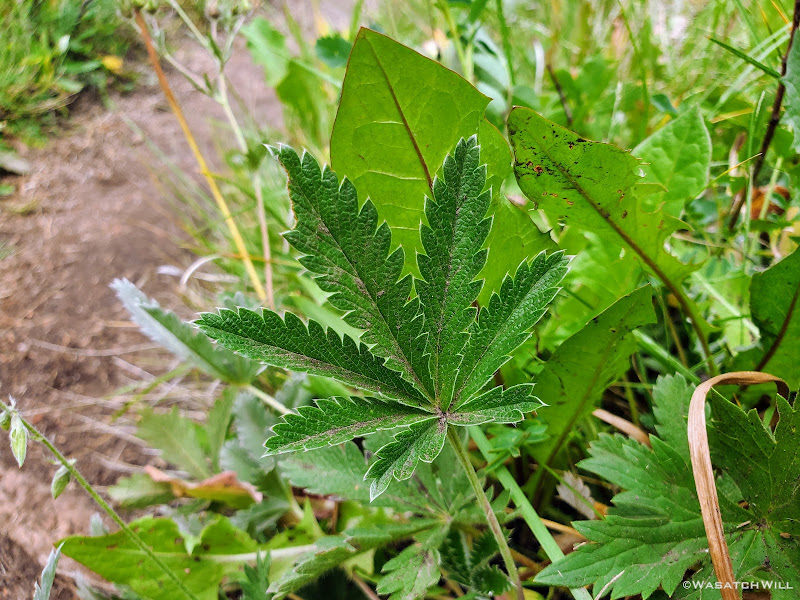 Further down I looked down at a plant and had to a do a double-take because its leaves stood out to me as something known for its...uhhh...medicinal properties. While this plant does appear to be a great doppelganger look-alike of the more well-known celebrity plant, Mary Jane, I believe what I was looking at was actually a flowering plant called Slender Cinquefoil, or Potentilla gracilis to be more scientific. I could be wrong though.