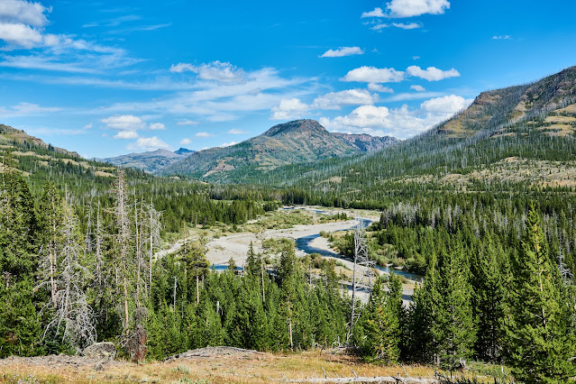 The southern border of Yellowstone and the Teton Wilderness. This is looking north into the park