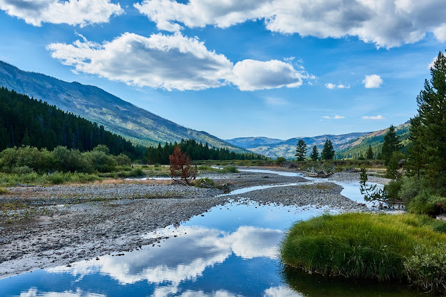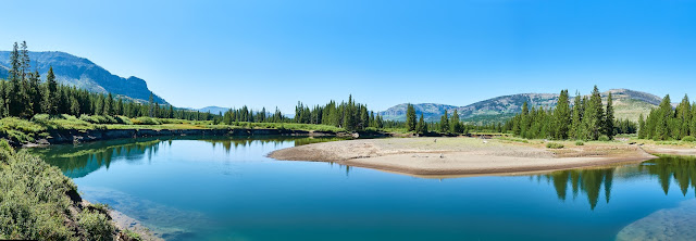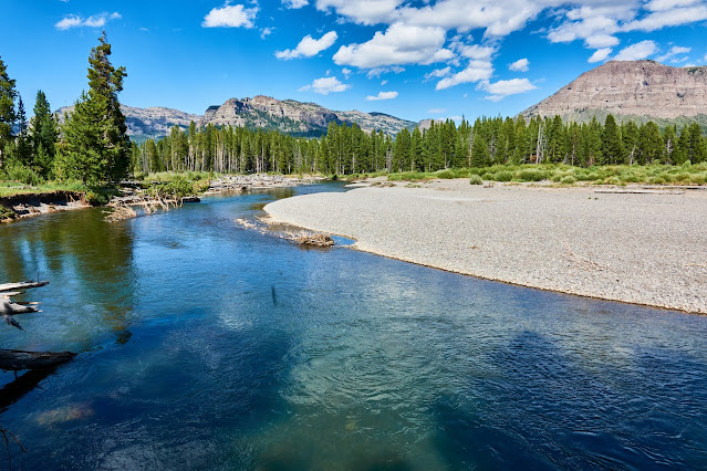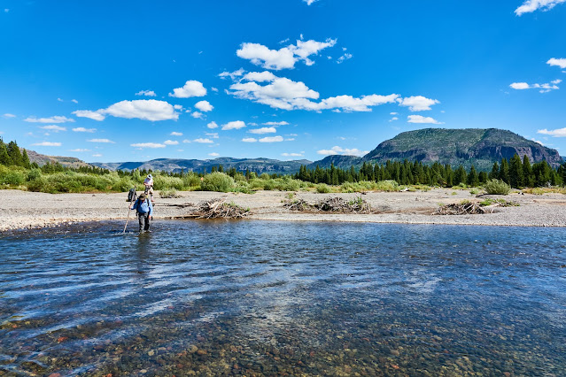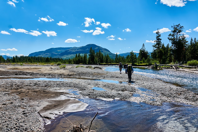 We had to wade across the Yellowstone River, which looked about waist deep, so I left my big camera behind. Only cell photos of this part.