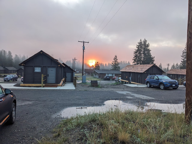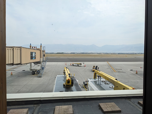 Next day, pack up, breakfast and back to Bozeman. The sky got significantly hazier as we got further north. I am so happy we missed all of this smoke (Bozeman airport)