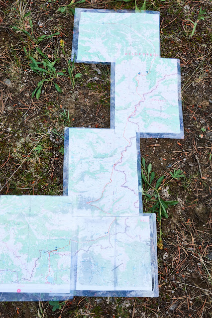 We were now off of Dave's Yellowstone map, but he had printed out our route (I had it on my phone), so we laid out the maps to get an overview of the remaining days (about 50 miles to cover).