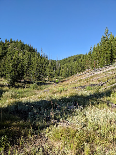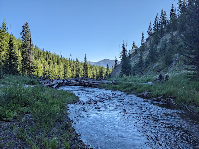 The trail pops out on Thorofare Creek, we spent a little time trying to figure out where to cross since there wasn't a marker on the far side.