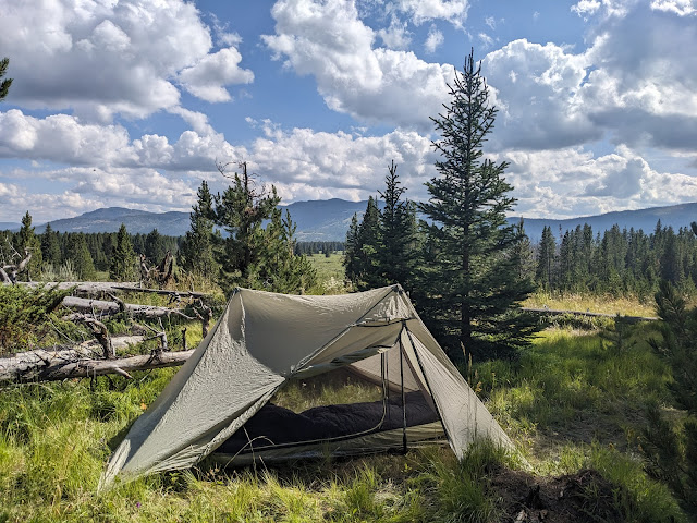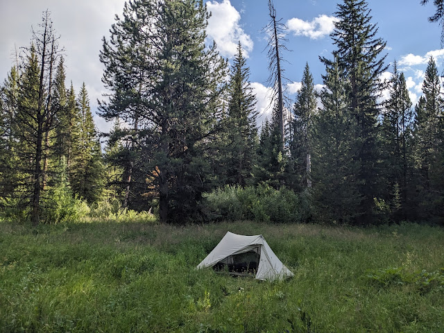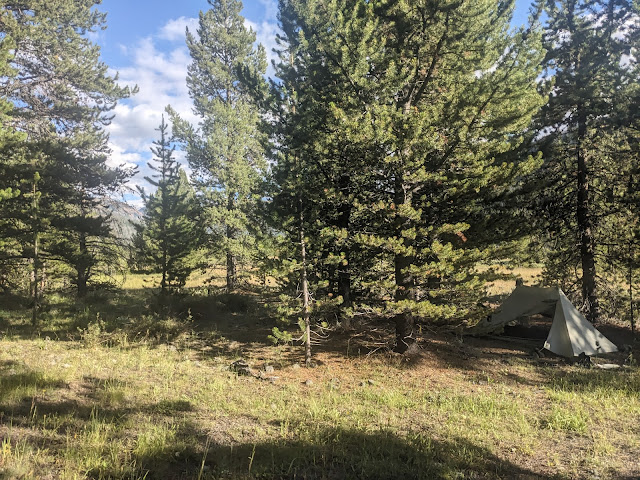 Camp for the 4th night near the intersection of Open Creek and Thorofare Creek