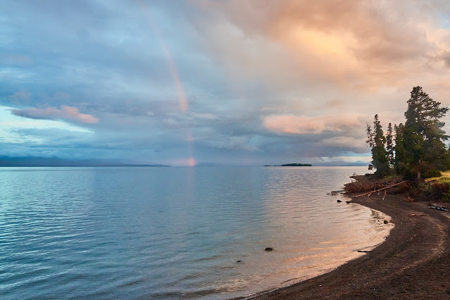 We met Hugh and Bob (and Mrs Bob) in West Yellowstone for an early dinner and then drove to the cabins behind the Lake Yellowstone Hotel. Sadly it was raining as we passed through Hayden Valley.