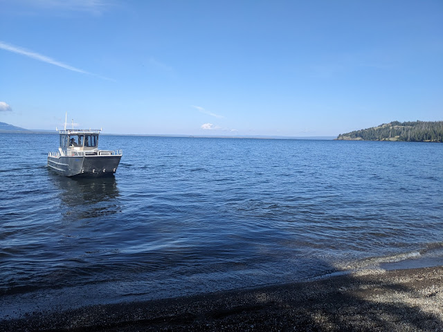 We had a boat shuttle to take us across the lake. It took us about 30 minutes to get to Site 5E6 on the east side of Yellowstone Lake