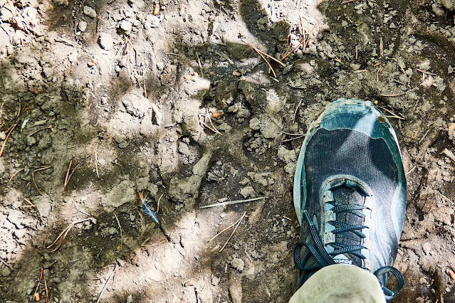 Hugh heading down the trail. I did not realize it at this point, but he was not feeling 100%.
