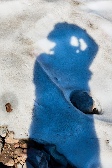 Self portrait in snow and shadow