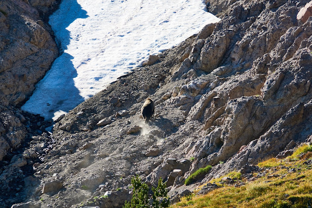 In less than a minute the bear probably covered a quarter mile and gained a couple hundred feet of elevation. It was a little ridiculous how easy it moved over this terrain. It also made it obvious that a human would have no chance if a grizzly decided to run at instead of away.