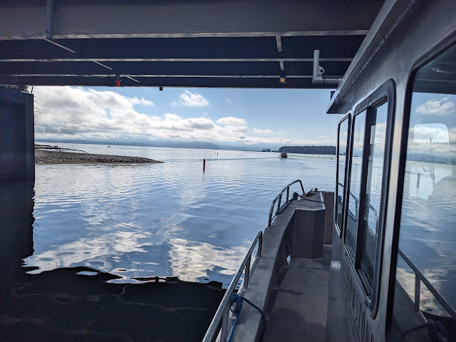 Woke up, finished last minute packing and loaded up the car for the short drive to the marina. Lots of moisture in the sky, everything was soaked with the fog.