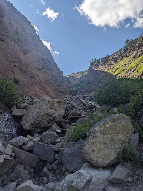 I hiked a little bit above the falls where there is a little slot canyon. It would be interesting to keep poking around, but I lost Hugh and Dave, probably time to head back down.